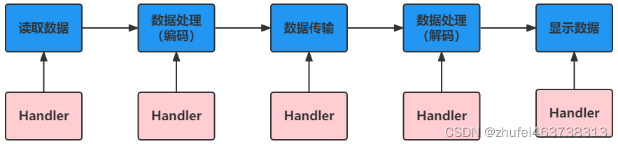 责任链模式会定义一个抽象处理器(Handler)角色,该角色对请求进行抽象,并定义一个方法来设定和返回对下一个处理器的引用。在Netty中,定义了ChannelHandler接口承担该角色。